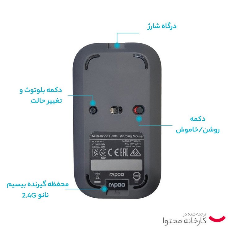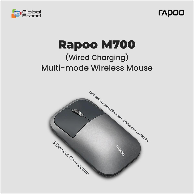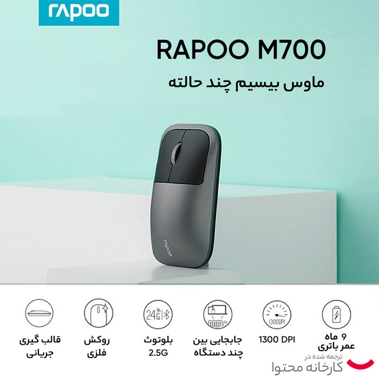 ماوس بی سیم رپو مدل M700 یک ماوس بیسیم با طراحی زیبا است که توسط کمپانی رپو (Rapoo) طراحی ، تولید و به بازار عرضه شده است. ابعاد کوچک این ماوس و طراحی بسیار ظریف و زیبای آن ، یکی از مزیتهای آن میباشد که به شما این امکان را میدهد تا بهراحتی آن را همراه با لپتاپ خود حمل نمایید و یا همیشه آن را به تنهایی همراه خود داشته باشید. این ماوس عملکرد روزانه شما را بهبود بخشیده و به شما این امکان را میدهد تا بتوانید با هر دو دست از آن استفاده نمایید، همچنین تکنولوژی اتصال بلوتوث نسخه 4 و 5 و بیسیم 2.4 گیگاهرتز آن بدون قطعی و تداخل به شما این امکان را میدهد تا با خاطری آسوده از ماوس خود در کنار وسایل بیسیم دیگر استفاده نمایید. این ماوس از یک حسگر اپتیکال بهره میبرد که قابلیت تشخیص 1300 نقطه در هر اینچ را دارد یا به عبارتی دقت حسگر این ماوس 1300dpi است که این دقت قابلیت کنترل نشانگر ماوس را بسیار بالا میبرد، همچنین حرکتی نرم و روان را همراه با امکان مرور هرچه بهتر صفحات اینترنت و فایلهای اسناد برای شما فراهم میسازد. ماوس M700 از یک گیرنده بسیار کوچک USB برای اتصال بهره میبرد، بنابراین این ماوس میتواند بهراحتی به هر دستگاهی که دارای پورت USB است، بدون نیاز به نصب هیچگونه نرمافزاری متصل شود. پس فقط کافی است شما فرستنده USB این ماوس را به لپتاپ و یا کامپیوتر خود متصل نمایید و از آن استفاده نمایید. درضمن این ماوس دارای کلید روشن خاموش نیز میباشد که به صرفهجویی در مصرف انرژی بسیار کمک میکند. ولی فاقد نشانگر وضعیت باتری است که ما دوست داشتیم این نشانگر را بر روی این ماوس مشاهده میکردیم. در کل رپو M700 یک ماوس کوچک و خوشدست است که از طراحی زیبا و دقت بالا برخوردار بوده و برای تمامی نیازهای روزمره شما مناسب میباشد.