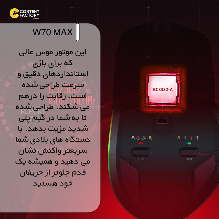تمام هسته های این موس اکتیو میباشد. موس گیمینگ بلادی مدل W70 Max یک موس گیمینگ جذاب ساخته شده توسط کمپانی بلادی است. این موس دارای ظاهری جذاب میباشد که توجه هر گیمیر یا کاربر معمولی را به خود جذب میکند این موس با داشتن شیار هایی بر روی خود و داشتن یک اسکرول نرم و جذاب احساس راحتی و در عین حال حرفه ایی به شما میدهد. موس گیمینگ بلادی مدل W70 Max دارای 5 حالت نور به صورت پیش فرض میباشد که شما میتوانید آن را به دلخواه خودتان تنظیم کنید و از آن لذت ببرید و با فشار دادن دکمه 1 بین رنگ ها بچرخید و لذت ببرید. همچنین شما می توانید 3 حالت سلاح (1 / N / 3) Left Key را با چرخ آتش اضافی کنترل کنید. از ویژگی های فنی این موس میتوان به موارد زیر اشاره کرد : دارای 10،000 CPI و حرفه ایی Frame Speed 8000 fps وزن 35 گرم Tracking Speed 250 ips طول عمر 50 میلیون کلیک طول عمر اسکرول آن بیش از 500000 بار میباشد 4M Onboard Memory دارای نور RGB در مجموع این موس یک موس بسیار دقیق و حرفه ایی برای گیمر ها میباشد که هنگام بازی از آن میتوانید لذت ببرید.