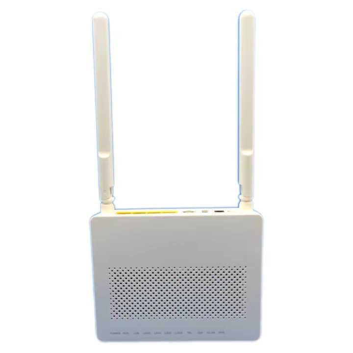 دو پورت تلفن دو عدد انتن 5dbi با برد مناسب روی باند 2/4 اتصال بیسیم پایداری را برای مصرف کننده اعم از شرکتی ,سازمانی ,اداری ,خانگی به ارمغان میاورد پورت GPON مودم فوق از نوع APC