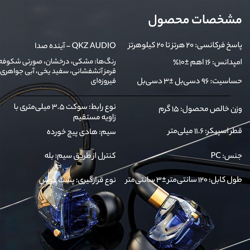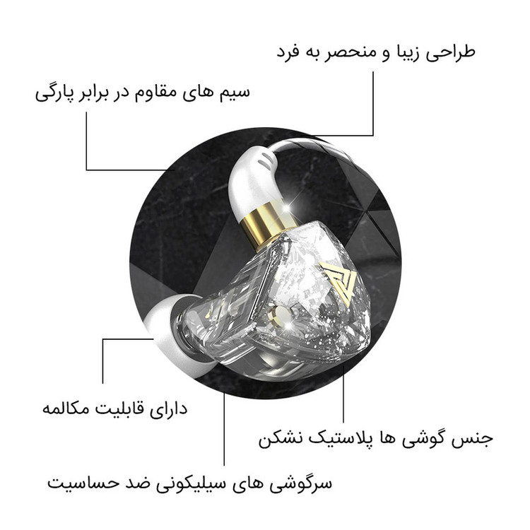 برند معتبر QKZ - پخش صدا با وضوح بالا (Hi-Res)- طراحی ارگونومیک و حالت خاص قرار گیری در گوش - استفاده از روکش محکم در قسمت اتصالات جهت دوام بیشتر - دارای دکمه های تنظیم صدا و مکالمه - دارای میکروفون و قابلیت مکالمه - دارای جعبه برای حمل آسان