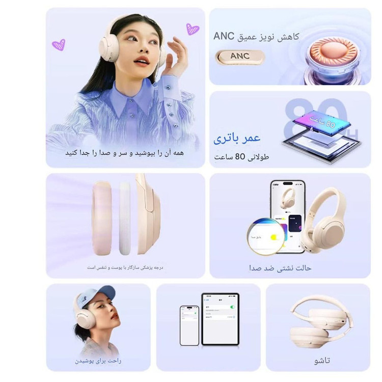 قابلیت نویز کنسلینگ: نویز کنسلینگ فعال (ANC) , نویز کنسلینگ میکروفون (ENC)