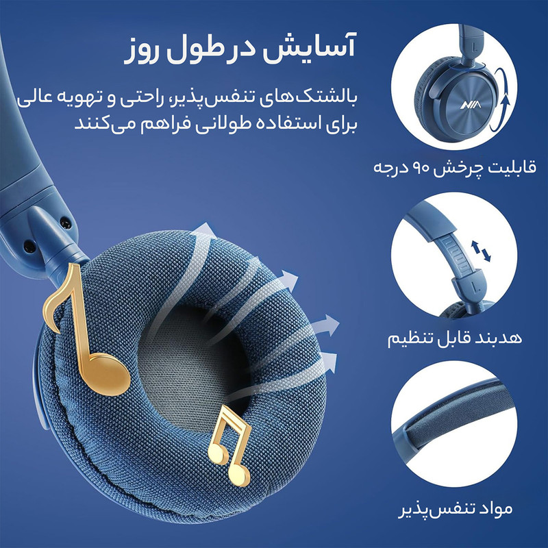 عمر باتری هدفون در حالت پخش موسیقی : 10 ساعت