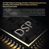 پردازندهی سیگنال دیجیتال Hi-Fi DSP برای بهینهسازی دقیق صدا، بعنوان یک تنظیمکنندهی حرفهای، سیگنالهای صوتی را کنترل و فضای سهبعدی موسیقی را عیناً شبیهسازی میکند.
