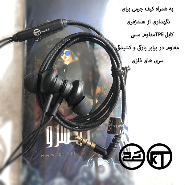 هدفون مدل «کیخسرو» هدفونی قدرتمند از برند کی تی متخصص در انواع هدفون که میتواند هر کاربر خوشسلیقهای را به خود جذب کند. برای این مدل، یک میکروفون در نظر گرفته شده است تا کاربران قادر به مکالمه با موبایل خود باشند. همچنین یک عدد دکمه برای قطع و وصل کردن صدا در آن تعبیه شده است. با این دکمهها میتوانید به تماسهایتان پاسخ دهید یا مکالمه را قطع کنید.و دو کلید جهت کاهش و افزایش صدا ! اتصال آن، با یک جک 3.5 میلیمتری L شکل انجام میگیرد که باعث میشود با تمام موبایلها و پخشکنندهها سازگار باشد. طول کابل تقریبا 1.2 متر و مناسب برای گوش کردن به موسیقی از موبایل و پخشکنندههای قابل حمل است. صدایی که از کیخسرو به گوش شما میرسد، به لطف قابلیت hifi و کاهش نویز و تفکیک صدایی بسیار بالا بسیار واضح است کیخسرو بسیار سبک است و راحت درون گوش چفت میشود و کاربر هنگام استفاده، وزن آن را حس نمیکند. امپدانس این محصول 32 اهم است و بهترین کارایی را با دستگاههای مجهز به این امپدانس ارائه میکند. روکش سیم این هدفون از جنس بسیار مرغوب پی وی سی کشسان و رشته های درون آن بافت های تی پی ای استفاده شده و موفق شده تست های ده هزار بار کشش و خمش را پاس کند.از مزیت های این هندزفری سری های فلزی و جک Lشکل است که موجب میشود عمر طولانی تر نسبت به مدل های معمولی داشته باشد.