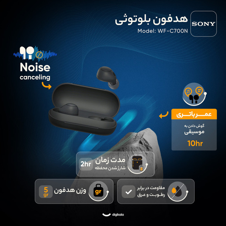 وزن هر هدفون 5 گرم / امکان کنترل لمسی / 10 دقیقه شارژ برای یک ساعت پخش