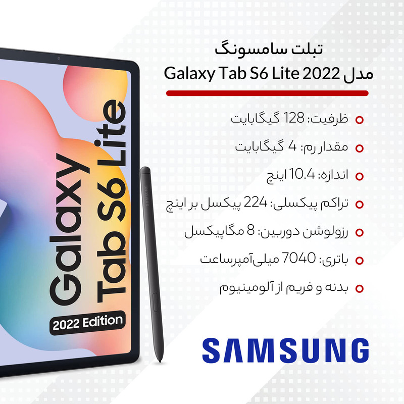تبلت 10.4 اینچ سامسونگ مدل Galaxy Tab S6 Lite 2022 Wi-Fi ظرفیت 128 گیگابایت و رم 4 گیگابایت به همراه قلم
