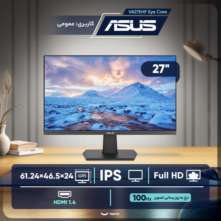 مشخصات فنی : پشتیبانی از پایه VESA با ابعاد ۱۰۰x۱۰۰ میلیمتر / تکنولوژی Motion Sync / تکنولوژی Eye Care Plus / قابلیت QuickFit / قابلیت SPLENDID Technology / قابلیت تنظیم رنگ مانیتور / قابلیت تنظیم زاویه Tilt از منفی 5 تا 23 درجه