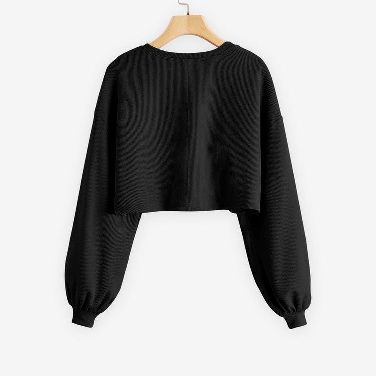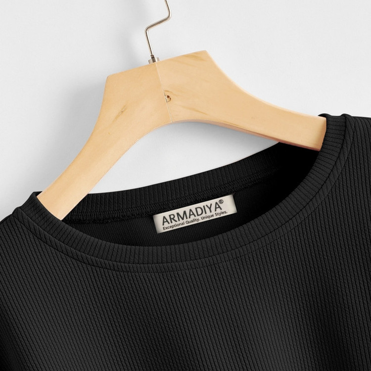 نشان برند ARMADIYA در کناره داخلی | جنس: پارچه کبریتی کشی | مدل: کراپ تیشرت آستین بلند اُورسایز | سایز: دارای تنوع سایز (راهنمای سایز در تصاویر محصول)