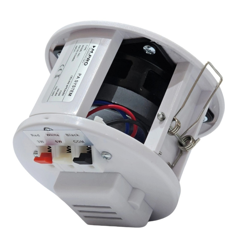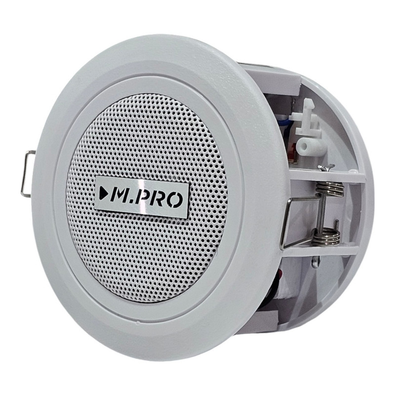 اسپیکر سقفی هالوژنی ام پرو تایوان مدل C360 از کوچکترین بلندگوهای سقفی می باشد که به صورت توکار در انواع سقف ها با قطر 9.2 سانتی متر نصب و راه اندازی می شود. این بلندگوی جذاب و با کیفیت حس خوب و زیبایی را برای شما و فضای نصب شده به ارمغان می آورد. اسپیکر سقفی هالوژنی ام پرو M.PRO C360 دارای بدنه ABS و مقاوم در برابر خوردگی و زنگ زدگی و توری آلومینیومی با رنگ پودری الکترواستاتیک تضمین استفاده برای سال های متوالی می باشد. ام پرو یکی از بزرگترین شرکت های تولید تجهیزات صوتی در تایوان است که محصولات این کمپانی در بسیاری از پروژه های بزرگ و بین المللی نصب می شود کیفیت بالای محصولات M.PRO مورد توجه پیمانکاران بزرگ ساختمانی واقع شده است و از بهترین ها در حوزه سیستم پیجینگ و کنفرانس می باشد.