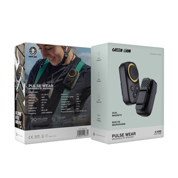 سپیکر بلوتوثی گرین لاین مدل GNPLSWRBT با نام Green Lion Pulse Wear است. این دستگاه یک گجت نوآورانه و مدرن است که به دلیل طراحی خاص و امکانات کاربردی خود، توجه کاربران علاقهمند به تکنولوژیهای پوشیدنی را به خود جلب کرده است.:Green Lion Pulse Wear یک بلندگوی قابل حمل با طراحی پوشیدنی است که از طریق بلوتوث به گوشی هوشمند یا سایر دستگاههای دیجیتال متل میشود. این محصول با بهرهگیری از مگنتهای دوگانه بهراحتی به لباس، کیف یا هر سطح فلزی متصل میشود و بدون نیاز به نگهدارندههای جداگانه، امکان استفادهی سریع و راحت را فراهم میآورد.این اسپیکر بلوتوثی پوشیدنی از طراحی ارگونومیک و کمحجم بهره میبرد و به راحتی قابل حمل است. ظاهر آن ترکیبی از رنگ مشکی مات با جزئیاتی به رنگ زرد است که جلوهای مدرن و اسپرت به آن بخشیده است. وجود دکمههای فیزیکی روی بدنه دستگاه، کنترل صدا و عملکرد دستگاه را بسیار ساده میکند. همچنین وجود گیرهی مخصوص در پشت آن، امکان اتصال به یقه، کمربند یا کولهپشتی را نیز فراهم کرده است.اتصال بلوتوثی پایدار: با استفاده از فناوری بلوتوث، این اسپیکر به راحتی با انواع گوشیها، تبلتها و حتی لپتاپها جفت میشود.استفاده هنگام ورزش یا پیادهروی واستفاده در محیط کار برای تماسهای تلفنی یا گوش دادن به موسیقی ومناسب برای رانندگان تاکسی یا پیکهای موتوریاستفاده در جلسات و کلاسهای آنلاینایدهآل برای سفر، کمپینگ و فعالیتهای فضای بازمیکروفون داخلی: وجود میکروفون داخلی امکان مکالمهی هندزفری را فراهم میسازد. بنابراین شما میتوانید تماسهای خود را بدون درآوردن گوشی پاسخ دهید.مگنتهای دوگانه (Dual Magnets): طراحی مغناطیسی به شما اجازه میدهد تا دستگاه را به راحتی روی سطوح فلزی بچسبانید یا آن را به لباس خود متصل کنید.زمان پخش ۸ ساعته: باتری داخلی این بلندگوی بلوتوثی تا ۸ ساعت پخش مداوم صدا را پشتیبانی میکند که برای استفادهی روزمره یا حتی سفرهای کوتاهمدت بسیار مناسب است.صدای با کیفیت: با وجود ابعاد کوچک، این اسپیکر بلوتوثی صدایی واضح و شفاف تولید میکند که برای پخش موسیقی، تماس صوتی یا حتی جلسات کاری آنلاین ایدهآل است.یکی از مزیتهای اصلی اسپیکر بلوتوثی گرین لاین طراحی پوشیدنی آن است که باعث میشود کاربر نیازی به نگه داشتن اسپیکر در دست یا روی میز نداشته باشد.