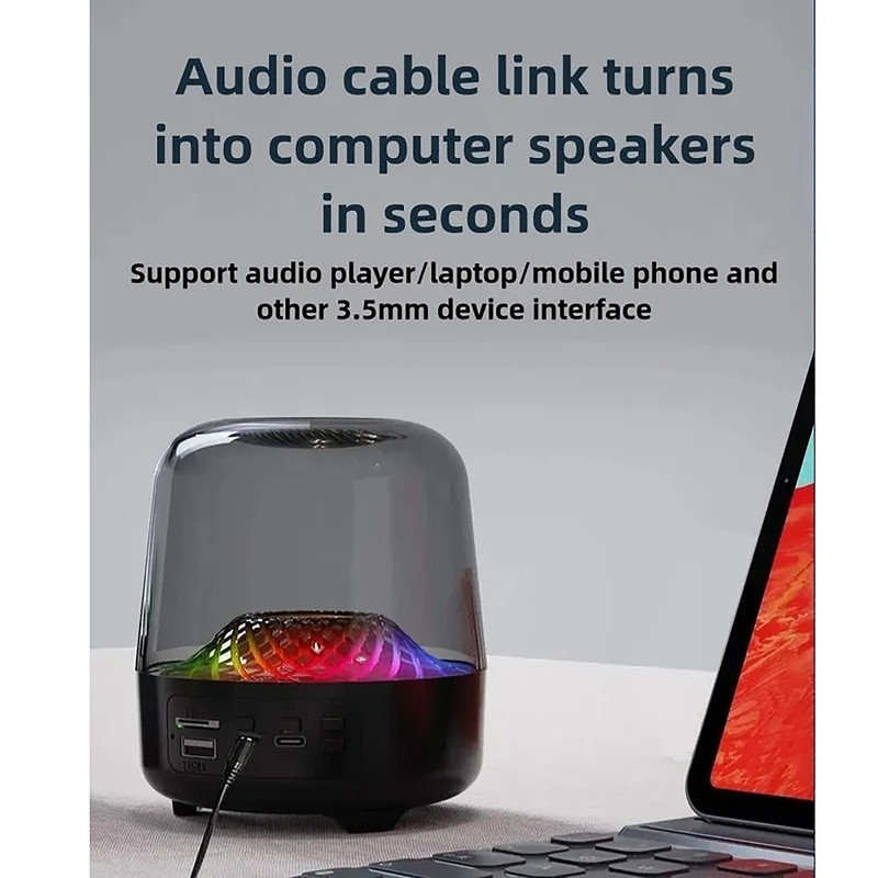 اسپیکر GLAZE-4 یک اسپیکر بلوتوثی قابل حمل با طراحی زیبا و نورپردازی چشمنواز است که ترکیبی از صدا و دکور را در اختیار کاربر قرار میدهد. طراحی آن به شکل یک حباب شفاف با نور داخلی گرم و الگویی مشبک شبیه لانه زنبور است که جلوهای خاص به فضا میبخشد. این اسپیکر با کیفیت صدای 360 درجه و بیس مناسب، تجربه شنیداری خوبی را ارائه میدهد و برای فضاهای داخلی یا محیطهای دنج بسیار مناسب است. باتری داخلی آن قابل شارژ بوده و بسته به نوع استفاده، حدود ۴ تا ۶ ساعت دوام میآورد. این اسپیکر علاوه بر قابلیتهای صوتی، با نورپردازی خاص خود میتواند به عنوان یک چراغ تزئینی یا چراغ خواب نیز استفاده شود و گزینهای ایدهآل برای هدیه، اتاق خواب، محیط کاری یا لحظات آرامشبخش شبانه است. GLAZE-4 از امکانات اتصال متنوعی بهرهمند است؛ از جمله بلوتوث نسخه 5.3، پورت USB برای پخش موسیقی از فلش، درگاه کارت حافظه TF، ورودی AUX برای اتصال مستقیم به سایر دستگاهها، و همچنین پورت Type-C برای شارژ. دکمههای کنترلی روی بدنه امکان تغییر حالت پخش، کنترل موسیقی و تنظیم صدا را بهراحتی در اختیار کاربر قرار میدهند. اسپیکر GLAZE-4 یک اسپیکر بلوتوثی قابل حمل با طراحی چشمنواز و نورپردازی جذاب است که تلفیقی از کیفیت صدا و زیبایی دکوراتیو را به کاربران ارائه میدهد. طراحی آن به شکل یک حباب شفاف با نور داخلی گرم و الگویی مشبک شبیه لانه زنبور، جلوهای خاص و دلنشین به فضا میبخشد. این اسپیکر با پخش صدای 360 درجه و بیس مطلوب، تجربهای لذتبخش در شنیدن موسیقی فراهم میسازد و گزینهای مناسب برای فضاهای داخلی یا محیطهای آرامشبخش است.