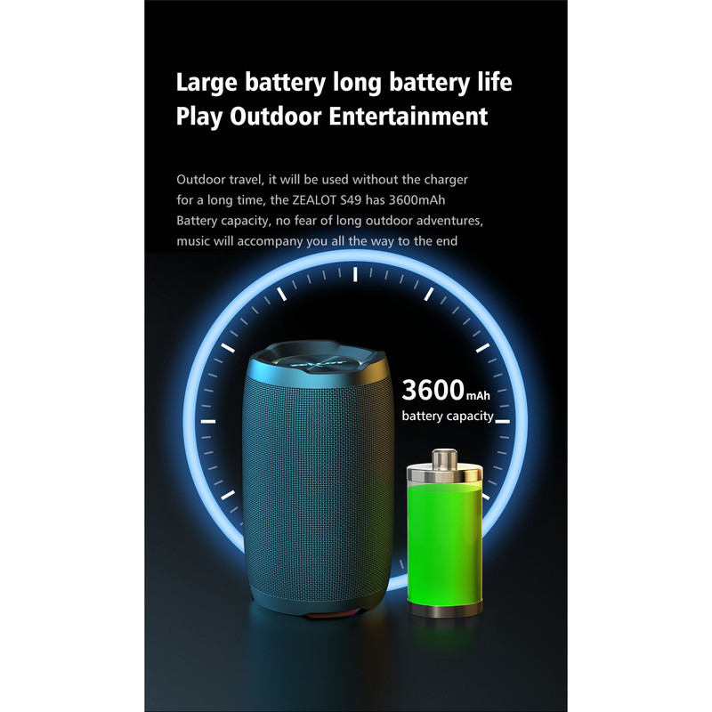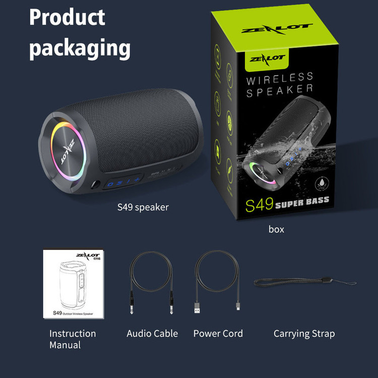 اسپیکر مدل S49 از برند زیلوت یکی از بهترین های این کلاس کاری از اسپیکر است.این اسپیکر دارای توان خروجی 10 وات و دارای توان ماکزیمم 20 وات می باشد.تمام اسپیکر های زیلوت مانند برند های بزرگ در این حوزه دارای مشخصات فنی واقعی است این نکته برای این برند و محصولات آن یک مزیت به حساب می آید.در دو طرف اسپیکر 2 عدد دیافراگم ساب وافر است که با پوشش فلزی محافظت می شود تا صدا با تمام زیر و بم آن به گوش شما برسد.همچنین این اسپیکر دارای گواینامه IP67 است تا اسپیکر شما در برابر پاشش آب و گرد و غبار محافظت شود.این اسپیکر از طریق درگاه ورودی تایپ سی شارژ می گردد که باعث شارژ شدن اسپیکر در کمترین زمان ممکن می شود.همچنین دارای درگاه ورودی USB و SD Card می باشد تا امکان خواندن فایل های صوتی از این درگاه ها هم امکان پذیر گردد. جک ورودی AUX این امکان را به شما می دهد تا از طریق کابل AUX هم به این اسپیکر متصل شوید.این اسپیکر دارای بلوتوث ورژن 5 می باشد تا ارتباط بی سیم با بهترین کیفیت برقرار گردد.از مزیت های دیگر این اسپیکر داشتن رینگ لایت با 16.8Milion RGB Color است.ظرفیت باطری داخلی این اسپیکر 3600 میلی آمپر است.این اسپیکر از فن آوری TWSپشتیبانی می کند به این معنی که 2 عدد اسپیکر S49 را از طریق بلوتوث میتوانید به هم وصل کنید تا صدایی 2 برابر و استریو برای شما فراهم گردد.با توجه به مشخصات فنی و کیفیت بالا ساخت و قطعات این اسپیکر توانسته صدا را با بهترین کیفیت به گوش مخاطبان خود برساند صدایی که با استفاده از فن آوری HiFi در بالاترین ولوم کیفیت را از دست نمی دهد.
