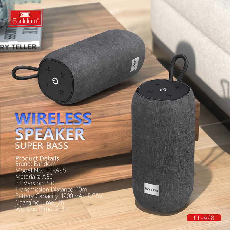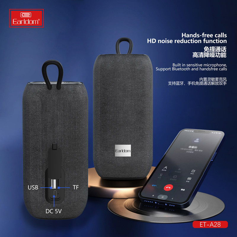 محصول رو به رو یکی از با کیفیت ترین محصولات شرکت معتبر ارلدام و همچنین بازار است ، زیبایی این محصول به عنوان یک اسپیکر شما را به خود جذب میکند. این اسپییکر به شکل یک استوانه طراحی شده که ارتفاع آن حدود 20 و قطر آن 9 سانتی متر است. این محصول دارای یک باتری 1200 میلی آمپری است که برای پخش موسیقی حدودا 3 ساعت شارژ نگه میدارد و از دیگر قابلیت های این اسپیکر قابلیت مکالمه است که زمان نگه داشتن شارژ برای مکالمه نیز حدود 3 ساعت است. یک درگاه USB TypeC برای شارژ دستگاه روی اسپیکر قرار دارد.به همراه این محصول یک کابل USB ارایه میشود که برای شارژ دستگاه استفاده میشود. برای استفاده از این محصول تنها کافی است که بلوتوث تلفنهمراه خود را روشن و اسپیکر را به آن متصل کنید این اسپیکر بررویی حالت بلوتوث تا فاصله 10 متر را پشتیبانی میکند. این اسپیکراز نسخهی 5 بلوتوث پشتیبانی میکند که به یاری آن مصرف انرژی اسپیکر تا حد زیادی کم شده است این دستگاه دارای قابلیت ست کردن آلارم نیز میباشد. این اسپیکر از کارت حافظه و فلش مموری نیز پشتیبانی میکند.
