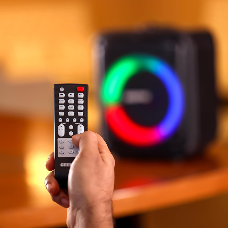 با استفاده از کنترل از راه دور همراه، میتوانید صدا را کم یا زیاد کنید، پخش موسیقی را متوقف یا جابهجا کنید و گوشی یا تبلت خود را برای کنترل بیسیم متصل کنید. باتری قدرتمند لیتیوم 7.4 ولت و 3600 میلیآمپر ساعت، امکان پخش طولانیمدت موسیقی و اجرای مهارتهای گیتار، آواز یا رقص شما را فراهم میکند.