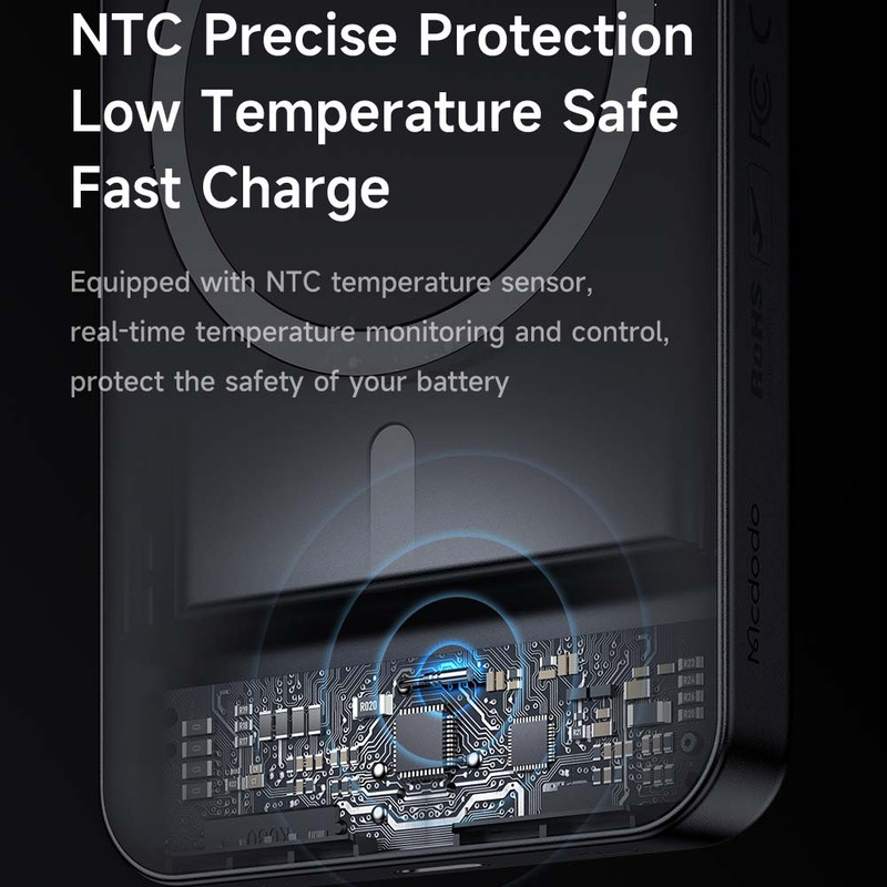 + موارد بیشترپاوربانک بیسیم 20 وات مک دودو مدل MC-426 ظرفیت 10000 میلیآمپر ساعت مناسب گوشیهای آیفون 12 و جدیدتر و سایر موبایل های دارای قابلیت شارژ بی سیم است. این محصول به صورت مگنتی (مگ سیف) به گوشی متصل میشود و شارژ به صورت وایرلس انجام میشود. حداکثر توان خروجی وایرلس در پاوربانک مک دودو مدل MC-426 ظرفیت 10000 میلی آمپر ساعت، 15 وات و با کابل تایپ سی 20 وات است . یک پورت Type C نیز بر روی این محصول وجود دارد که هم برای شارژ کردن و هم برای شارژ شدن با توان 20 وات قابل استفاده است. البته باید دستگاه شما از این توان و تکنولوژی فست شارژ پشتیبانی کند. پاوربانک مک دودو مدل MC-426 ظرفیت 10000 میلی آمپر ساعت دارای ابعاد 21x67x99 میلیمتر و وزنی حدود 200 گرم است و به راحتی میتوانید آن را حمل کنید. جنس بدنهی این محصول از پلیکربنات ضد حریق ساخته شده و همینطور دارای چراغ LED برای نمایش میزان شارژ است . ورودی تایپ سی : 5V⎓3A | 9V⎓3A خروجی تایپ سی: 5V⎓3A | 9V⎓2.22A | 12V⎓1.67A خروجی وایرالس با توان های : 15W / 10W / 7.5W / 5W است.
