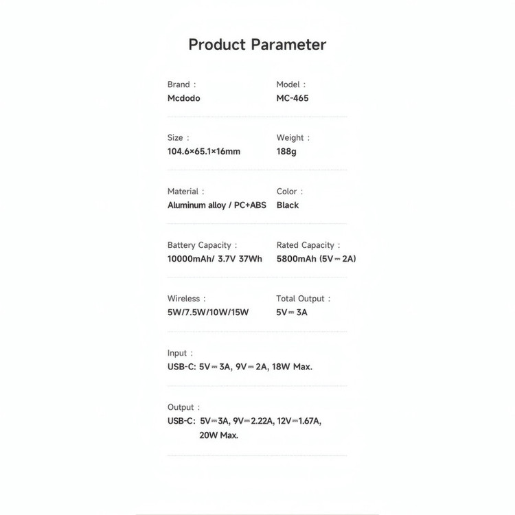 پاوربانک مک دودو مدل MC-465 ظرفیت 10000 میلی آمپرساعت