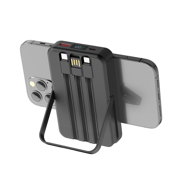 دارای 5 خروجی ( دوخروجی دارای کابل فست شارژ / یک خروجی وایرلس شارژ فست شارژ / دو خروجی TYPE-C , USB فست شارژ )