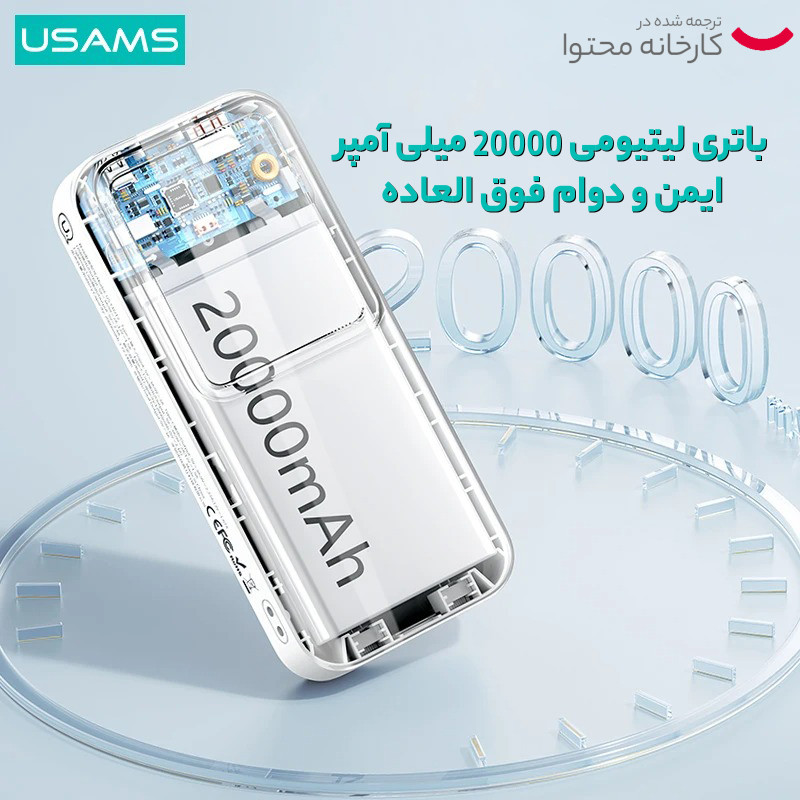 پاوربانک 20 وات یوسمز مدل CD212-20W ظرفیت 20000 میلی آمپر