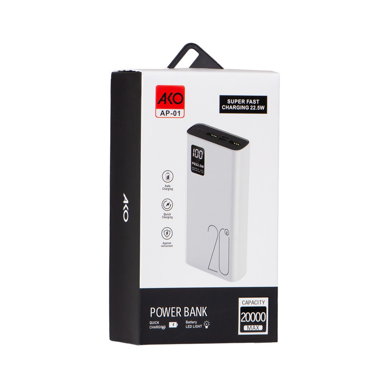 پاوربانک آکو مدل AP-01 ظرفیت 20000 میلیآمپرساعت، پاوربانکی است که میتوانید بهراحتی و سهولت از آن استفادههای مفیدی داشته باشید. این پاوربانک محصولی از برند آکو با امکانات فراوان در یک ابعاد مطلوب و مناسب طراحی شده است. طراحی ظاهری این پاوربانک بسیار جذاب و ماهرانه است. این مدل با ظرفیت اسمی 20000 میلیآمپرساعت تولید شده که پاسخگوی نیاز شما در سفر و مواقعی که به پریز برق دسترسی ندارید، است.