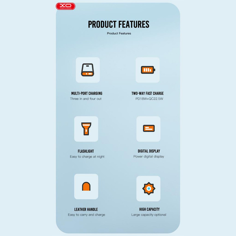 اوربانک این روزها از ضروری ترین وسایل همراه ما به حساب می آیند. پاوربانک XO PR158 با داشتن 4 پورت خروجی، حداکثر توان خروجی 22.5 وات و ظرفیت اسمی 50000 میلی آمپر ساعت می تواند همراه خوبی برای شما باشد. داشتن صفحه نمایش دیجیتالی برای نمایش باتری کامل کننده ویژگی های این پاوربانک است.