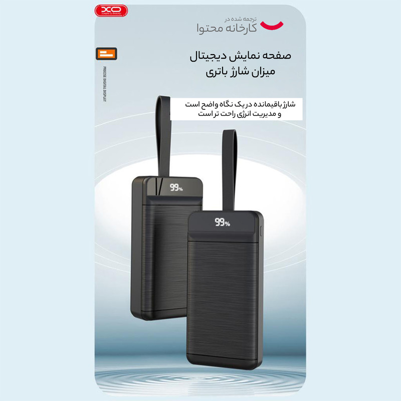 برای اطلاع از میزان شارژ پاوربانک XO PR158 نمایشگر دیجیتالی در نظر گرفته شده است که میزان شارژ باقی مانده را به در صد نمایش می دهد.