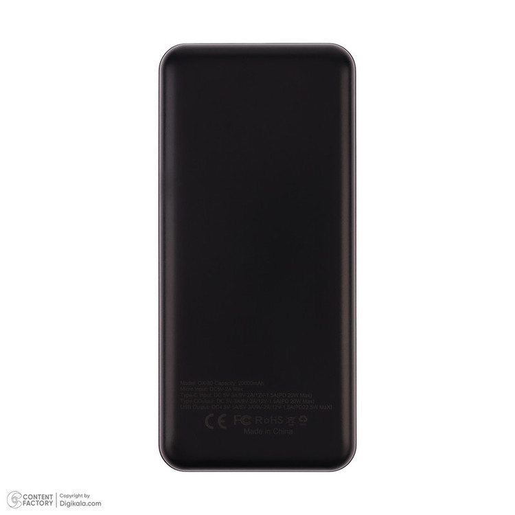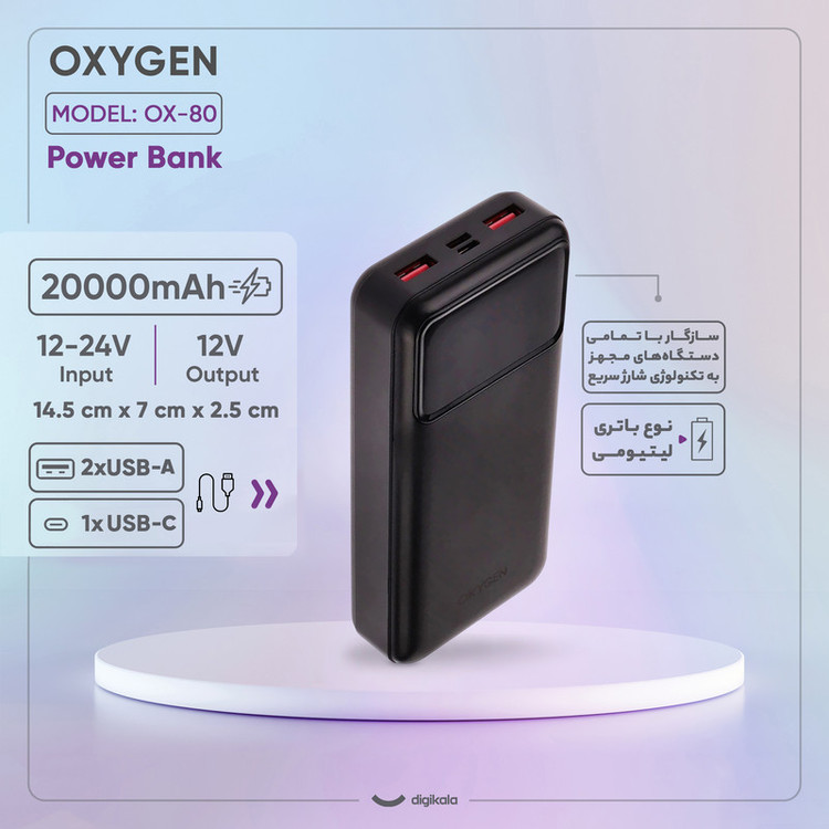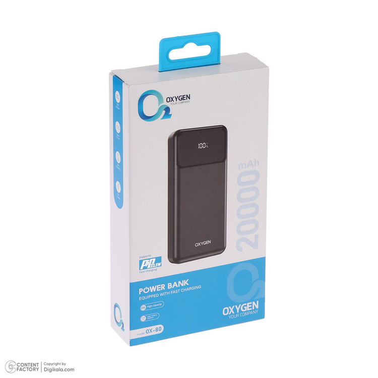 پاوربانک 22.5 وات اکسیژن مدل OX-80 ظرفیت 20000 میلیآمپر ساعت