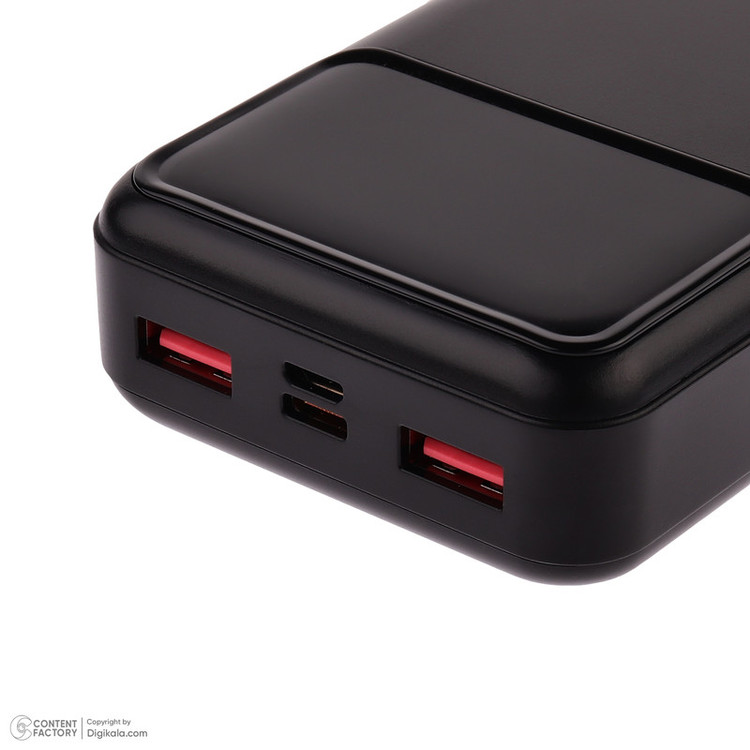 دارای یک پورت Micro USB با مشخصات 5 ولت 2 آمپر برای شارژ پاوربانک / دارای یک پورت USB-C مشترک برای ورودی خروجی با مشخصات 5V 3A و 9V 2A و 12V 1.5A / دارای دو پورت خروجی USB با مشخصات 4.5V 5A و 5V 3A و 9V 2A و 12V 1.65A / توان پاوربانک تا 22.5 وات