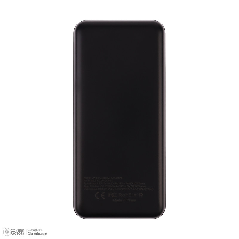 پاوربانک 22.5 وات اکسیژن مدل OX-80 ظرفیت 20000 میلیآمپر ساعت