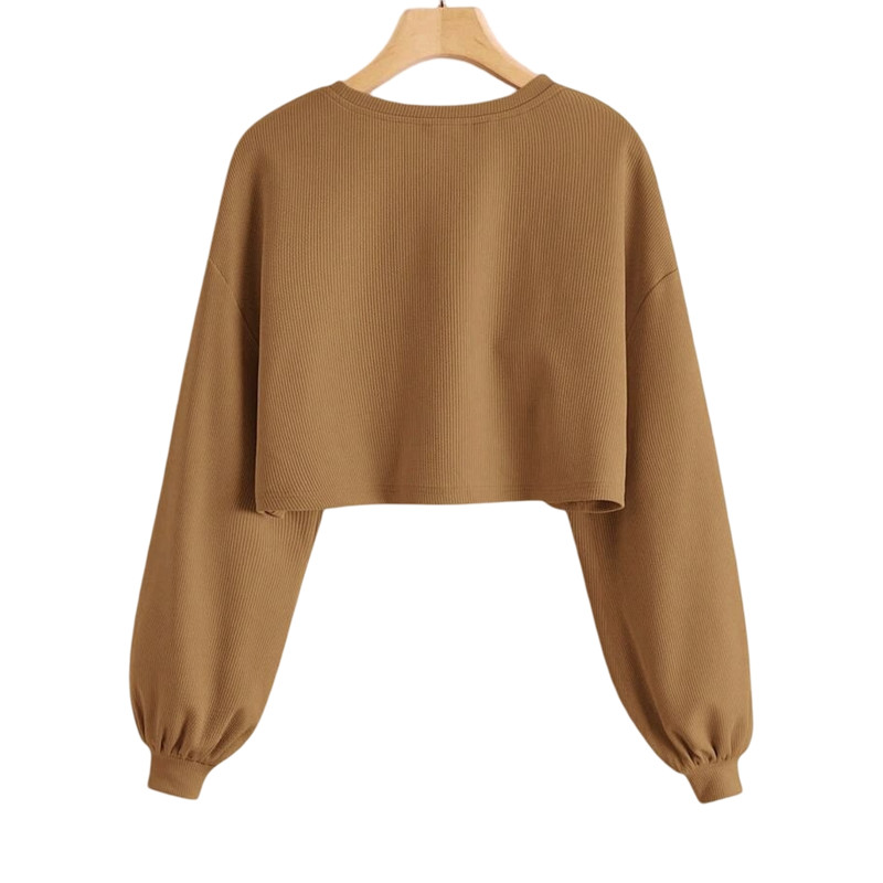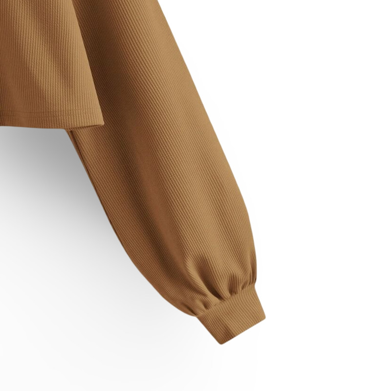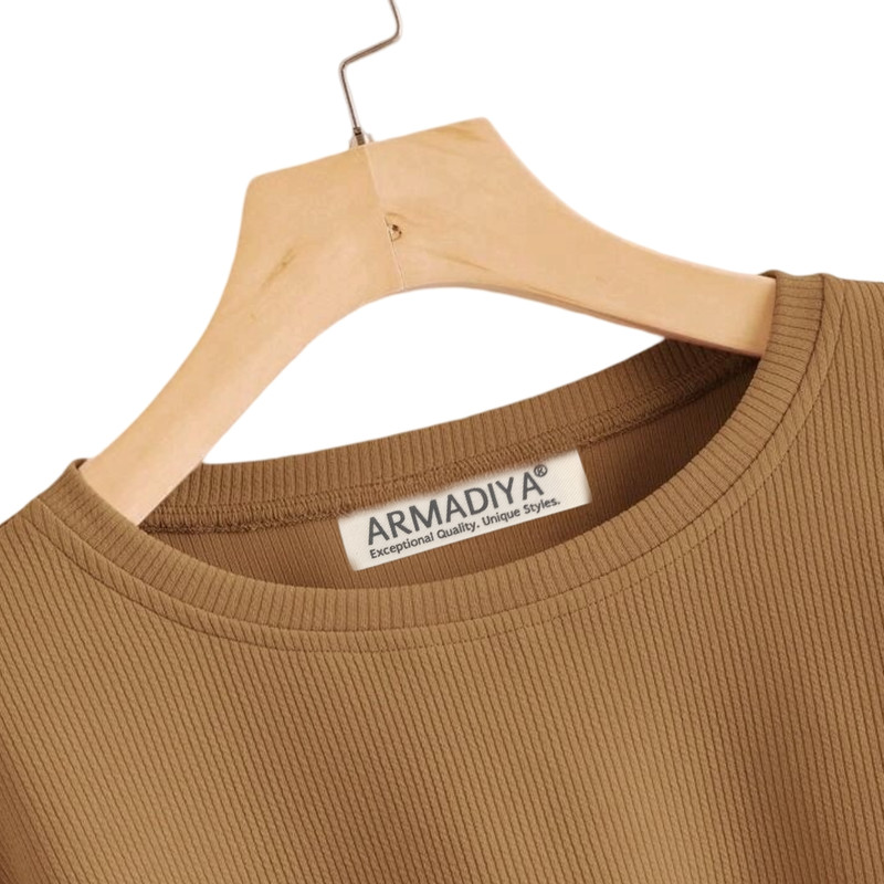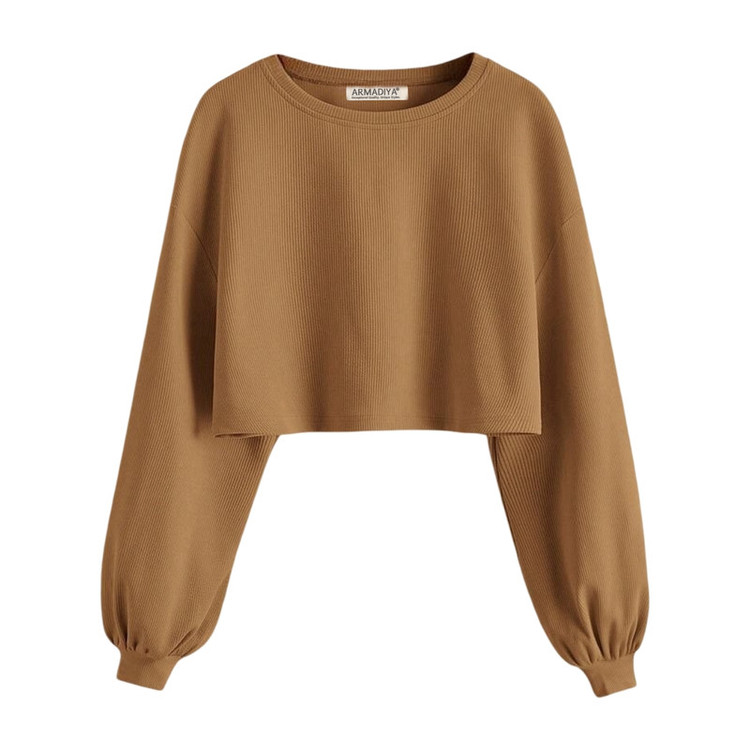 نشان برند ARMADIYA در کناره داخلی | جنس: پارچه کبریتی کشی | مدل: کراپ تیشرت آستین بلند اُورسایز | سایز: دارای تنوع سایز (راهنمای سایز در تصاویر محصول)