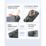 مشخصات فنی : ظرفیت باتری: 10000mAh لیتیوم-یونی ورودی: USB-C PD (20 وات) خروجی: شارژ بیسیم 15 وات، USB-C PD (20 وات) توان کلی: 15 وات شارژ بیسیم + 20 وات شارژ سریع مناسب برای: گوشیهای هوشمند، ایربادها، ساعتهای هوشمند نوع باتری: لیتیوم-یونی
