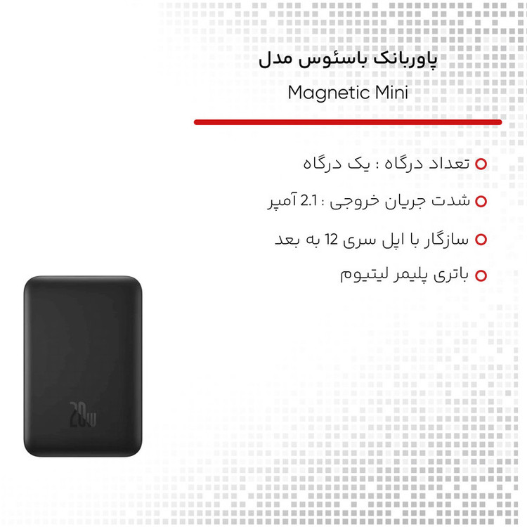 ظرفیت 10000 میلی آمپر قابلیت اتصال MageSafe برای آیفون های سری 12 به بعد باتری پلیمر لیتیوم