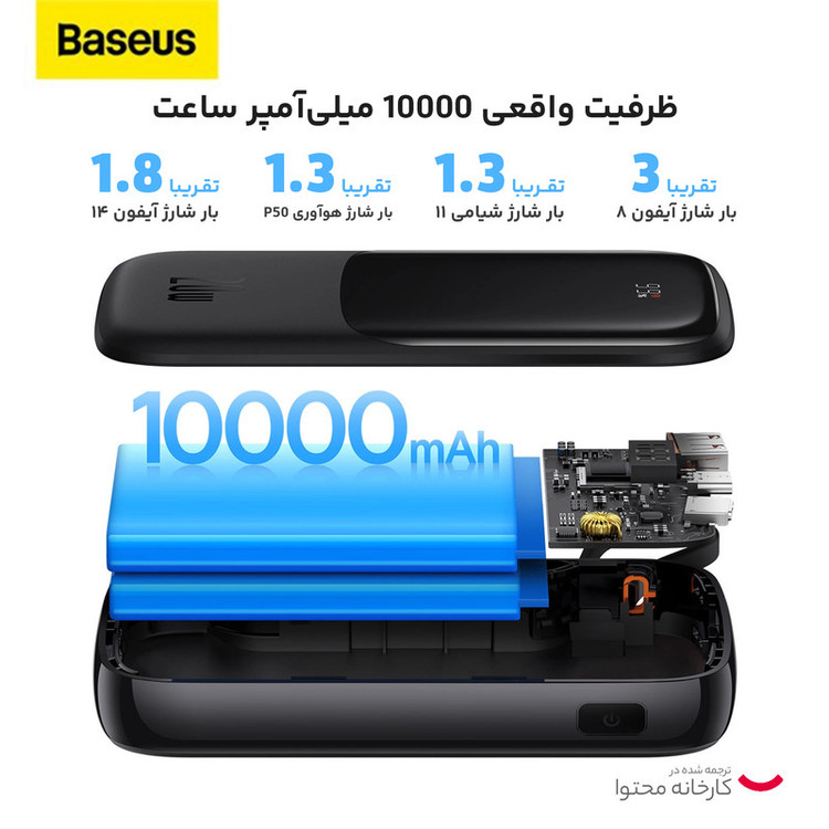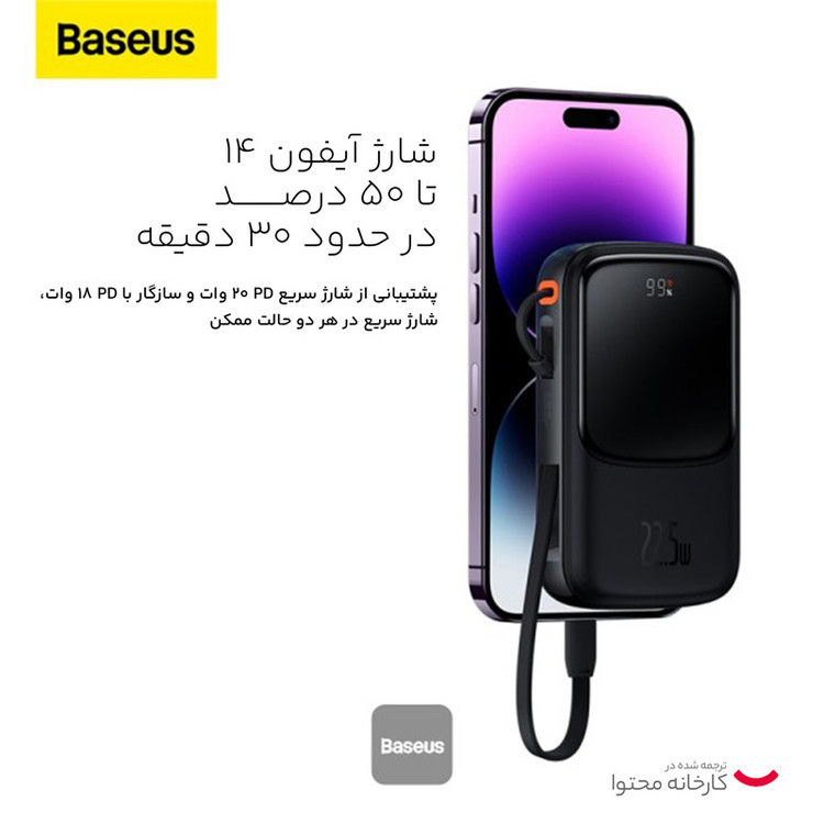 قابلیتهای ویژه: شارژ شدن سریع پاوربانک (با شدتجریان 2.0 آمپر و بالاتر) , کابل متصل به بدنه