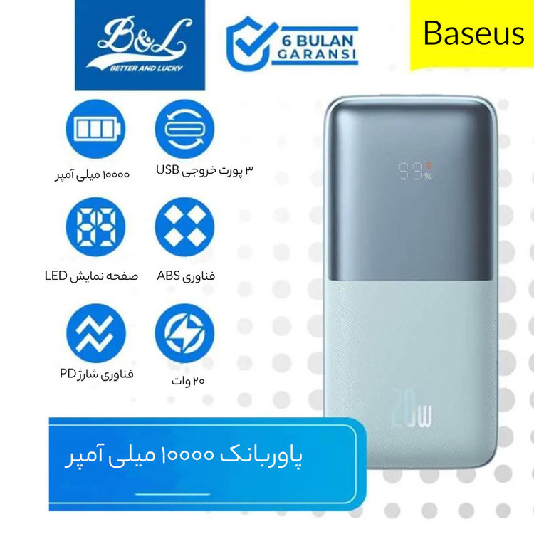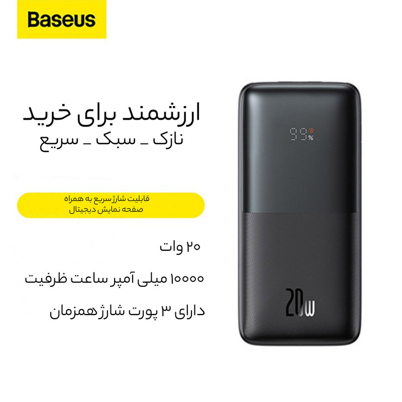 پاوربانک باسئوس مدل PPBD2-1020 ظرفیت 10000 میلیآمپر ساعت