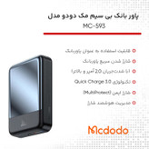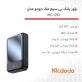 پاور بانک بی سیم مک دودو مدل MC-593 ظرفیت 10000 میلی آمپر ساعت