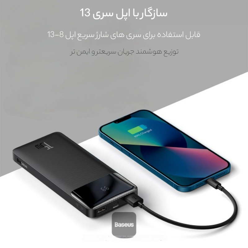 پاوربانک بیسوس مدل PPMDL-I01 ظرفیت 10000میلی آمپر ساعت