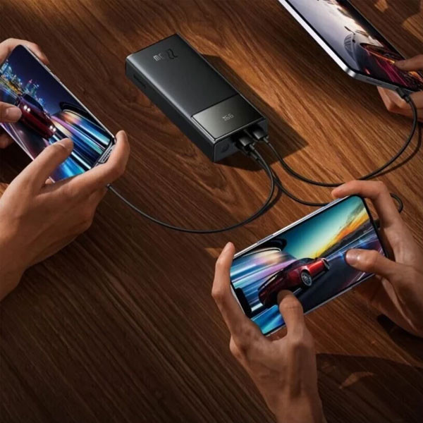دارای 3 پورت خروجی و 2 پورت ورودی دارای ظرفیت اسمی 30000mAh توان خروجی کلی: 22.5 وات دارای نمایشگر LED شارژ سریع