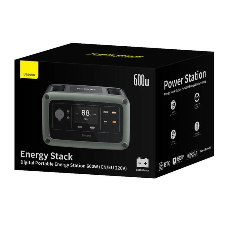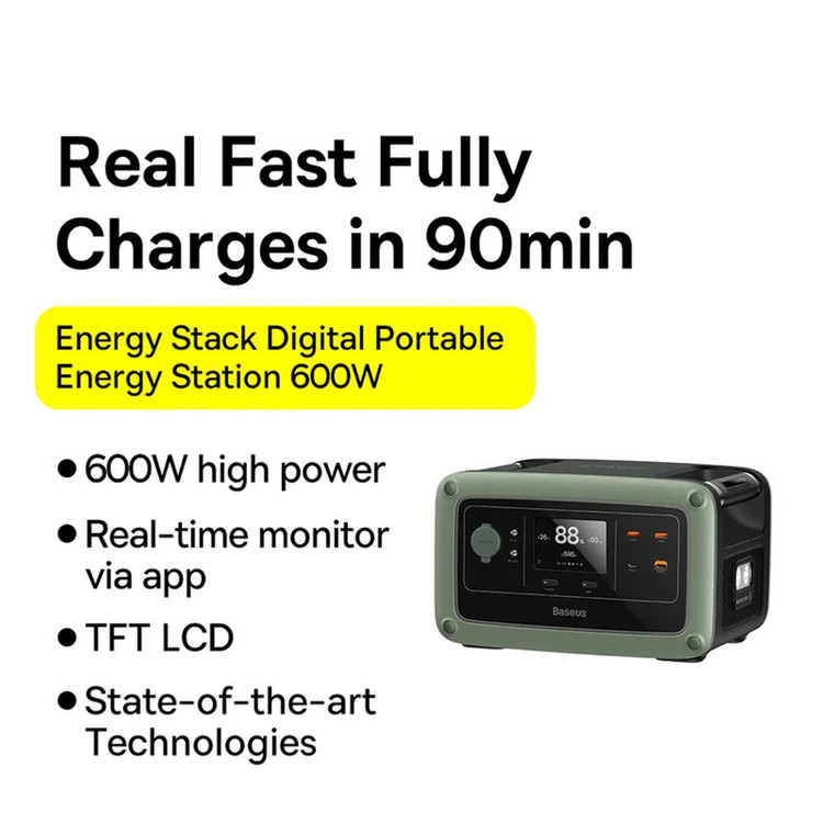 شارژ با استفاده از برق شهر با ولتاژ 200 تا 240 ولت یا آداپتور DC با حداکثر توان 100 وات / دارای یک پورت Type-C ورودی-خروجی / صفحه نمایش TFT برای نمایش وضعیت / عملکرد شارژدهی Baseus Stack Energy (شارژ در 90 دقیقه) / دارای دو پریز برق شهری بر روی پاوربانک