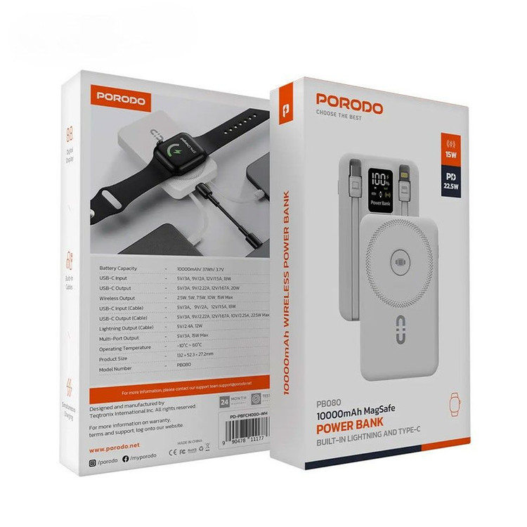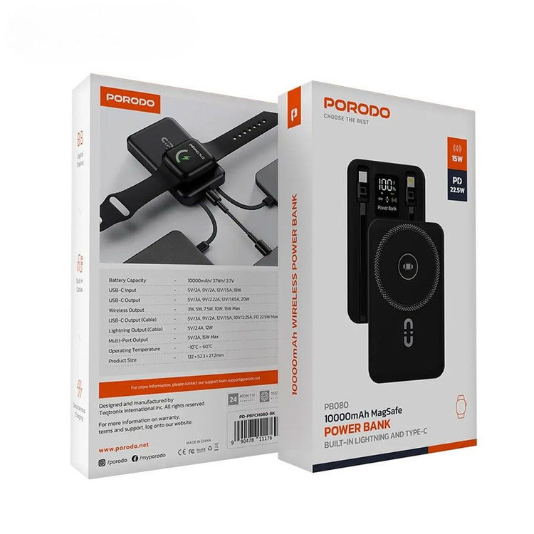 مشخصات فنی: ظرفیت: ۱۰۰۰۰ میلیآمپر ساعت تکنولوژی شارژ سریع PD + QC3.0 شارژ بیسیم مغناطیسی MagSafe کابل تایپسی متصل چراغ LED نمایش درصد شارژ محافظت در برابر شارژ بیشازحد، اتصال کوتاه، و دمای بالا