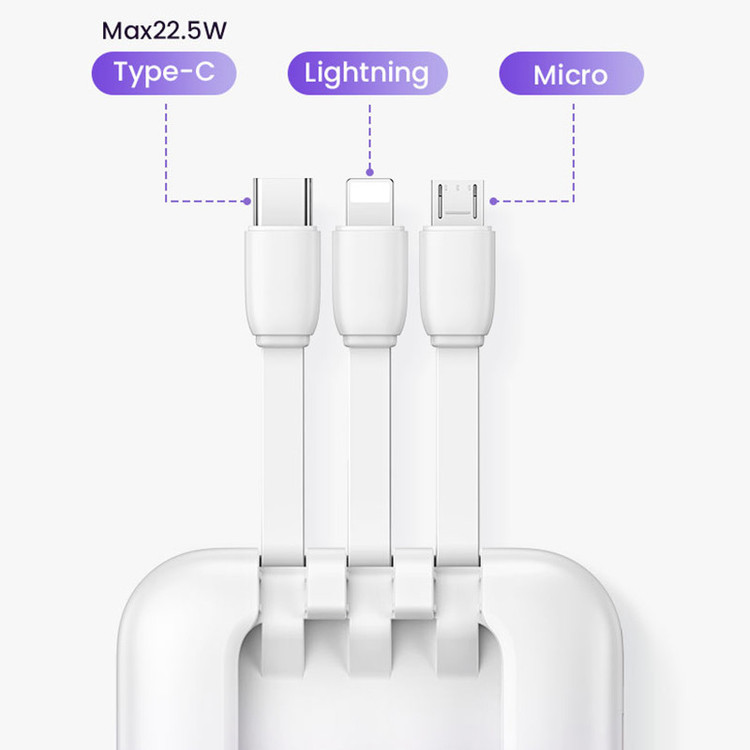دارای 3 کابل متصل (لایتنینگ-میکرو - تایپ سی) - دارای 2 پورت خروجی (تایپ سی،USB)