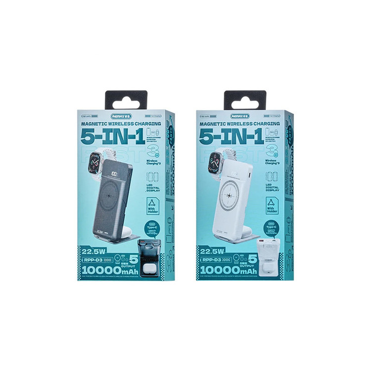 پاوربانک 5کاره بی سیم ریمکس مدل RPP-D3 22.5W ظرفیت 10000 میلی آمپر ساعت