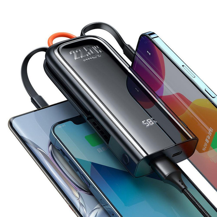 ظرفیت: 10000 میلیآمپر توان خروجی: 22.5 وات تعداد پورت: 2 عدد تعداد شارژ همزمان دستگاه: 3 عدد Fast Charge: دارد تعداد کابل متصل به پاوربانک: 1 کابل Type-C و 1 کابل Lightning آیفون