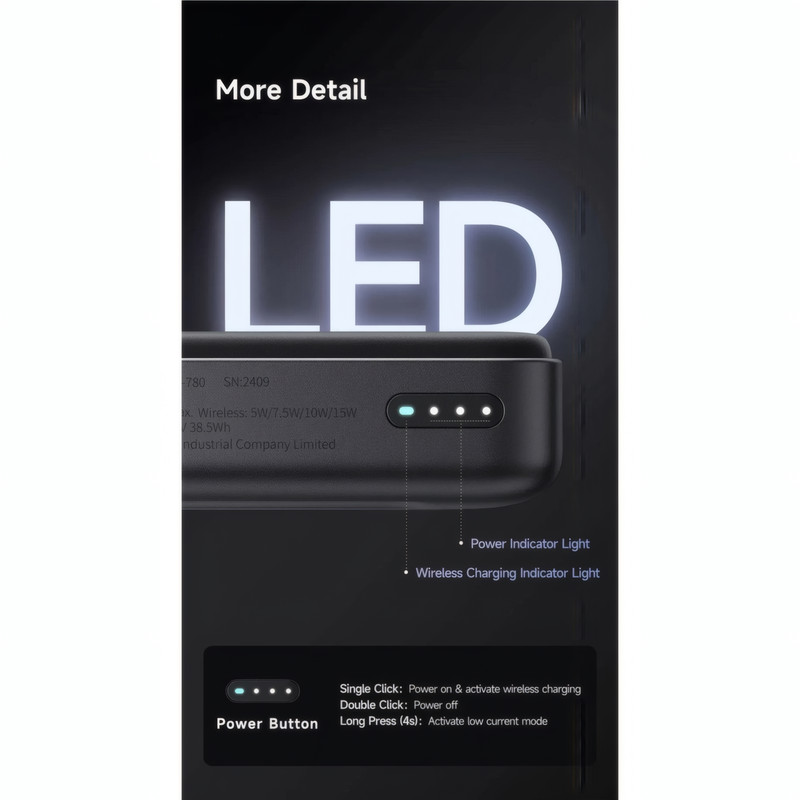 مشخصات فنی : ابعاد: 20×67×105 میلیمتر وزن: 226 گرم ظرفیت اسمی: 10000 میلیآمپر ساعت جنس بدنه: پلیکربنات + پلاستیک ABS درگاه ورودی: تایپ C (حداکثر 18 وات) درگاه خروجی: تایپ C (حداکثر 30 وات) و پد شارژ وایرلس (حداکثر 15 وات)