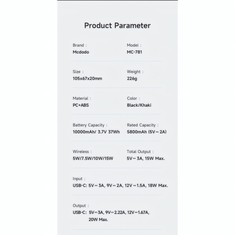 پاوربانک مک دود مدل MC-781 ظرفیت 10000 میلی آمپرساعت