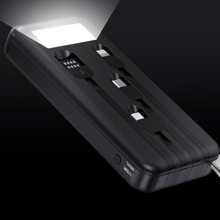 سه کابل متصل به بدنه micro و type-c و لایتنینگ دارای صفحه نمایش کابل شارژ جهت شارژ پاوربانک چراغ قوه