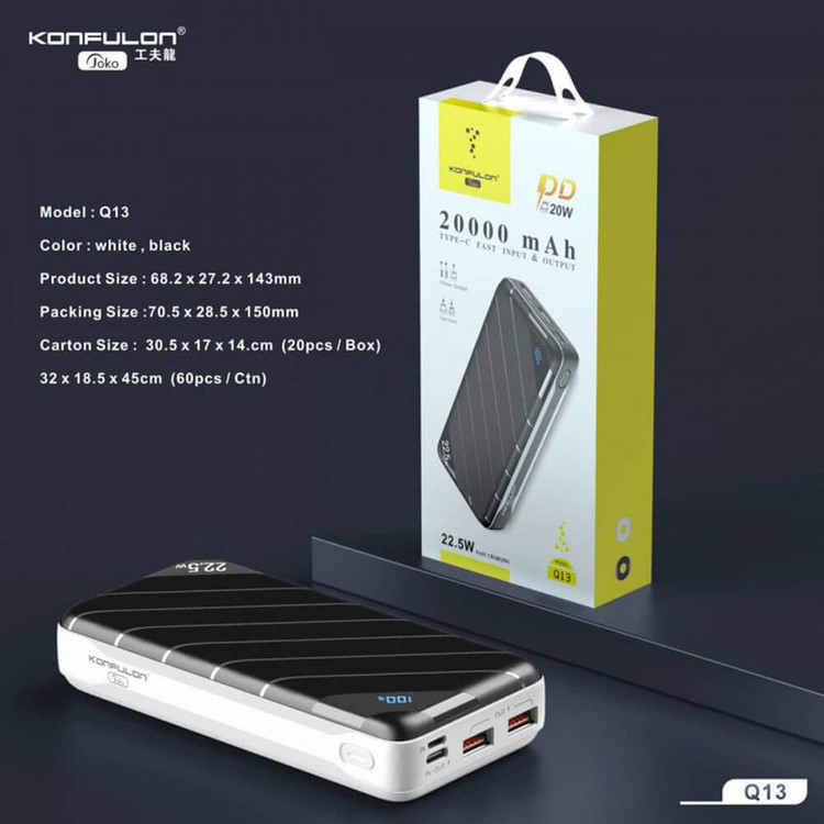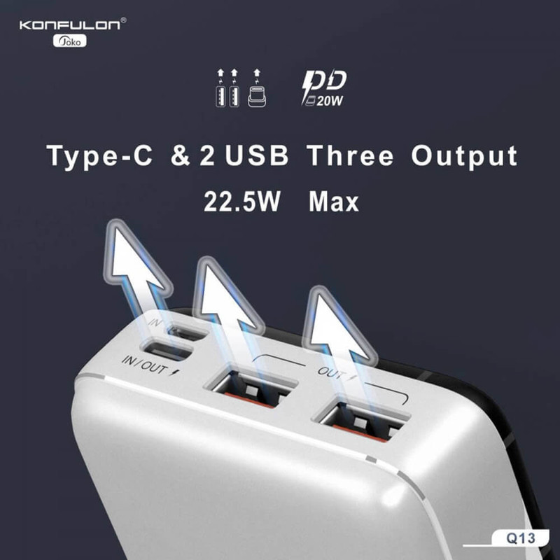 مدل:Q13 شارژ سریع:دارد ظرفیت:20000 میلی امپر رنگ:سفید - مشکی تعداد پورت خروجی:3 عدد