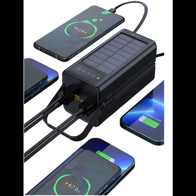 ظرفیت: 60000mAh نوع باتری: لیتیوم پلیمری ورودیها: USB-C، Micro USB، Lightning، پنل خورشیدی خروجیها: USB-C، 4× USB-A، کابل USB-C و Lightning داخلی توان خروجی: QC 22.5W و PD 20W نمایشگر دیجیتال: دارد چراغ قوه (Flash/SOS): دارد