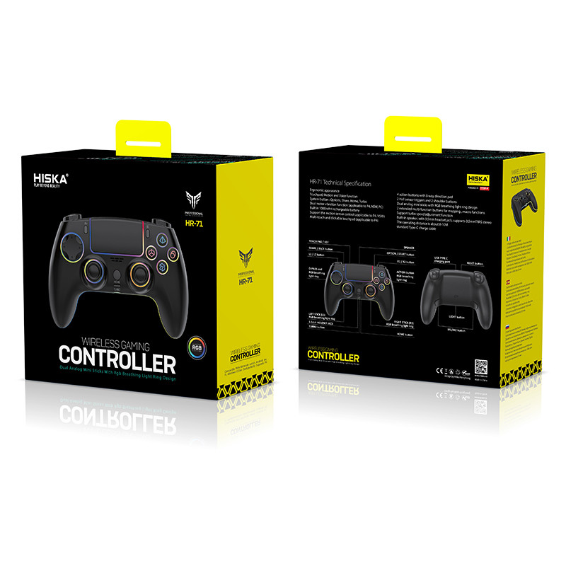 کنترلر ها یا دسته های بازی با تغییرات زیادی در سال های گذشته همراه بوده اند. افزوده شدن برخی از ویژگی ها مانند لرزش و دکمه های توربو به آن ها را می توان از مهم ترین تغییرات به وجود آمده دانست. امروزه برخی از گیمرها کنترلر کنسول را به کنترلر های مربوط به PC ترجیح می دهند و از این روی به دنبال دسته بازی های طراحی شده بر اساس طراحی کنترلر های کنسول می باشند. دسته بازی بی سیم هیسکا مدل HR-71 را می توان یکی از همین محصولات دانست که امروزه در بازار عرضه شده است و شما می توانید از ویژگی های آن برای لذت بردن از بازی کردن با کامپیوتر استفاده کنید. این محصول برای PC، اندروید و PS3 و PS4 بوده و شما می توانید انتظار عملکرد بسیار خوبی را از آن داشته باشید. شما برای اتصال آن می توانید از بلوتوث نسخه 5.0 استفاده کنید و همچنین امکان اتصال سیمی آن نیز برای شما در نظر گرفته شده است. ظرفیت باتری دسته بازی HISKA HR-71 برابر با 1000 میلی آمپر ساعت بوده و شما می توانید انتظار عملکردی بیش از 18 ساعته محصول با هربار شارژ را داشته باشید. فناوری که در تولید این دسته بازی بی سیم استفاده شده است را می توان مورد استفاده در بسیاری از کامپیوترهای شخصی دانست و در واقع این محصول به صورت استاندارد طراحی شده است. با این وجود می توان گفت که قابلیت اجرای بدون دردسر برای دستگاه های اندرویدی نیز در نظر گرفته شده است تا کاربران بتوانند با خیال راحت از آن استفاده کنند. از قابلیت های جذاب این محصول می توان به: دارابودن از دو موتور ویبراتور قدرتمند، پشتیبانی از موشن سنسور، تاچ پد لمسی با قابلیت کلیک، پشتیبانی از تنظیم عملکردها به صورت Turbo Speed، اسپیکر داخلی، سوکت 3.5 میلی متری هدست و کلید های کاربردی اعم از SHARE, OPTIONS, TURBO, TOUCHPAD, HOME و همچنین چهار کلید اضافی که در پشت دسته قرار گرفته برای عملکردهای Mapping, Macro اشاره کرد. و در آخر دسته بازی هیسکا مدل HR-71 مجهز به نورپردازی RGB می باشد که لذت و هیجان بازی کردن را دوچندان می کند.