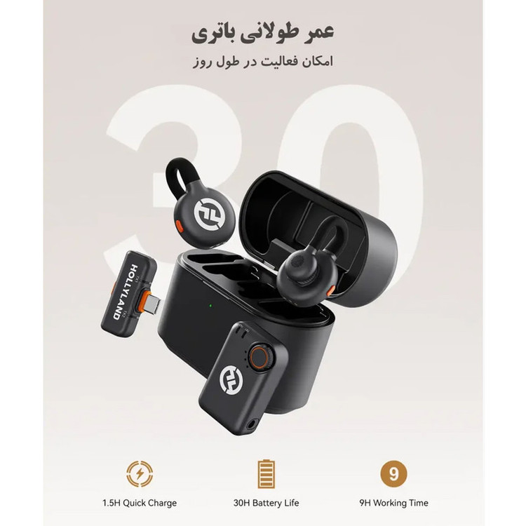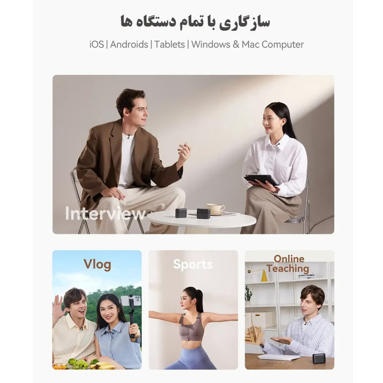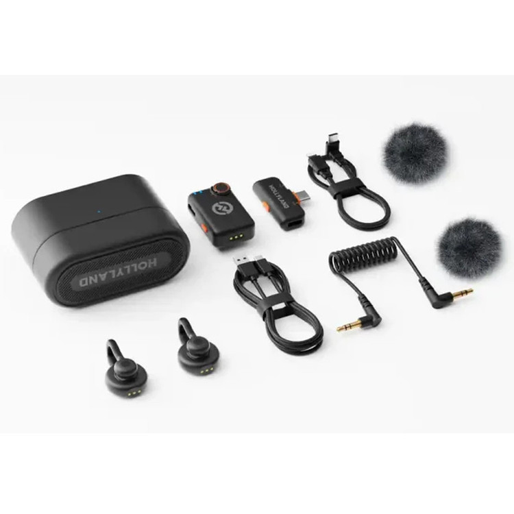 2 عدد فرستنده 1 عدد گیرنده USB-C 1 عدد گیرنده دوربین کیس شارژ کابل 3.5mm TRS (اتصال به دوربین) کابل شارژ USB-A به USB-C کابل USB-C به لایتنینگ 2 عدد خز بادگیر