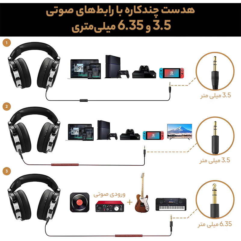 هدفون مانیتورینگ Pro 10 یکی از جدیدترین محصولات شرکت OneOdio که طرفداران بسیاری نیز پیدا کرده است از هدفونهای بسیار با کیفیت بازار به شمار میروند که با بهره مندی از قیمت بسیار مناسب، کیفیت بسیار خوبی را در اختیار شما قرار میدهند. ، که یک هدفون استودیویی و دی جی بسیار با کیفیت و خوش صدا است. این هدفون از بهترین متریال ممکن ساخته شده است و همین موضوع باعث شده تا سالها بتوانید از آن استفاده کنید.با بهره مندی از درایورهای 50 میلی متری ساخته شده از جنس Neodymium و بهره مندی از فرکانسهای بیس به داینامیکترین شکل ممکن، میتوانید به راحتی از هدفون Pro 10 برای ضبط، میکس و یا دی جی کردن استفاده کنید و آهنگهای خود را با نهایت کیفیت مانیتور کنید.بازه فرکانسی گسترده و دقیق این محصول آن را به یک هدفون رقابتی برای شرکتهای بزرگ دنیا تبدیل کرده است. شما با استفاده از Pro 10 میتوانید به آسانی فرکانسهای بیس خود را بشنوید و این موضوع به شما کمک میکند تا در پروسه میکس و مسترینگ آهنگ خود، تصمیمات درستی را بگیرید. بسیاری از افرادی که در استودیوها مشغول ضبط و یا میکس آهنگ هستند از این محصول استفاده میکنند. همچنین دی جیهای بسیاری با استفاده از Pro 10 به صدای مورد نظر خود دست پیدا کرده اند.یکی از ویژگیهای بسیار خوب این محصول این است که شما میتوانید گوشیهای این محصول را به صورت جداگانه ببندید که این ویژگی باعث میشود تا بتوانید تنها با یک گوش به مانیتور کردن آهنگ خود بپردازید. این موضوع باعث میشود تا میکسهای خود را در حالت مونو نیز چک کنید. از طرفی، اتصال این محصول به شکل اتصال 3.5 میلی متری و یا 6.35 میلی متری است که امکان اتصال به انواع دیوایسها از جمله گوشیهای موبایل، تبلتها و کامپیوتر و لپتاپ را برای شما فراهم میکند.اگر شما به دنبال هدفونهایی هستید که با استفاده از آنها بتوانید بیس بیشتری از آهنگهای خود دریافت کنید، هدفونهای Pro 10 یکی از بهترین گزینههایی میباشد که میتوانید تهیه کنید. اما برای استفاده از این هدفونها حتما لازم نیست تا دی جی باشید و یا در استودیوها مشغول به کار باشید. شما میتوانید به راحتی از این محصول برای گوش دادن به موسیقیهای مورد علاقه خود استفاده کرده و از آنها لذت ببرید.