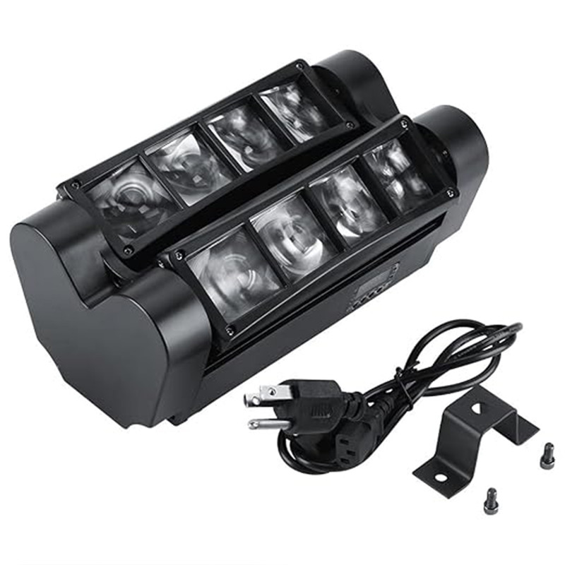 این مووینگ دو بازوی کوچک که جزو رقص نور های حرفه ای محسوب می شود ، محبوبیت چشم گیری را در میان مصرف کنندگان دارا می باشد . کوچک بودن و قیمت پایین این کالا منجر به فروش بالای این مووینگ می شود . کارایی این مووینگ به این گونه می باشد که در بخار تعداد نُه لوله نور رنگی توسط دستگاه تشکیل می شود و به کمک موتور های دستگاه این لوله ها به بازی در می آیند . باز و بسته شدن این لوله ها الگویی ایجاد می کند که به تار عنکبوت تشبیه می شود ، از این رو به آن مووینگ اسپایدر به معنی مووینگ عنکبوتی می گویند . همچنین این دستگاه با نام crazy fighter نیز به معنی جنگنده دیوانه شناخته می شود .